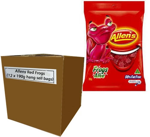 So why wait? Order your 12 x 190g hang sell bags of Allens Red Frogs today from The Professors Online Lolly Shop and get ready to experience the ultimate in candy satisfaction. Whether youre looking for a snack to enjoy on your own or a fun addition to your next party or event, Allens Red Frogs are sure to be a hit.