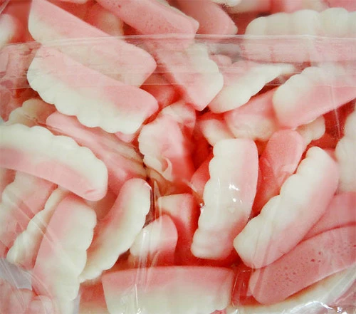 Each package of Allseps Bulk False Teeth comes in a configuration of 8x1kg bags, ensuring that you have an ample supply of fun-filled confections to indulge in. The vibrant colors of pink and white will instantly catch your eye and ignite your imagination, making these candies a delightful addition to any candy display or event.