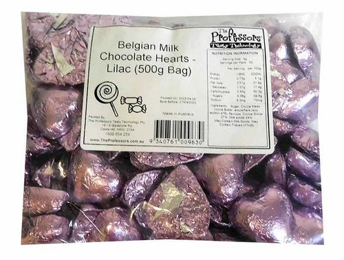 So why not treat yourself or your customers to the deliciousness of Belgian Milk Chocolate Hearts – Lilac? Our chocolate is unbeatable in taste and quality, and were confident that youll love every bite. Order now from The Professors Online Lolly Shop and experience the joy of our delicious Belgian Milk Chocolate Hearts – Lilac.