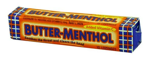 Butter Menthols – soothes the throat and clears the head. Each stick is 40g and has 10 lozenges. (36 x 40g in display unit)
