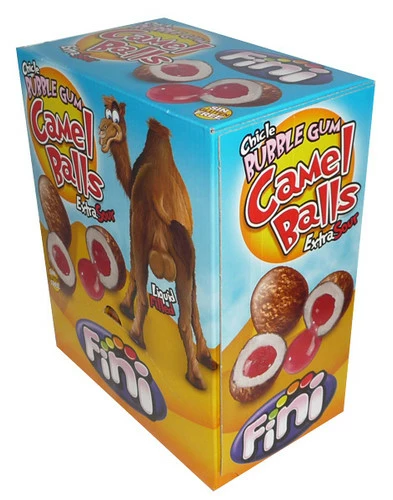 Camel Balls Bubble Gum – Extra Sour. Liquid filled and gluten free. (200 pieces in a display unit)