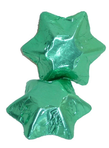 Ice green foil covered genuine Chocolate Gems chocolate stars. There are approximately 700 heavenly chocolate stars in this 5kg bag.