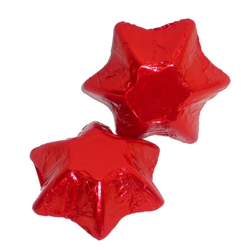 Red foil covered genuine Chocolate Gems chocolate stars. There are approximately 700 heavenly chocolate stars in this 5kg box.