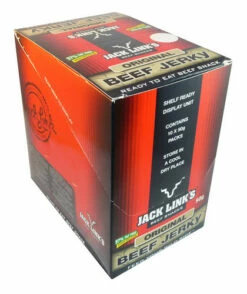 Genuine and delicious Jack Links Beef Jerky – Original flavour. Premium cuts of meat, perfectly seasoned and smoked for the subtle smoky flavor you expect in authentic jerky. Naturally delicious. (10 x 50g Beef jerky packs in a display unit)