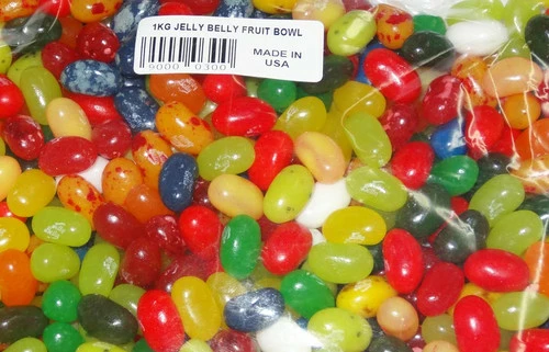 Jelly Belly – Fruit Bowl. These are the original Jelly Belly sweets! They are like mini jelly beans and come in a range of spectacular flavours. A yummy mix of fruity flavours and colours. (1kg)