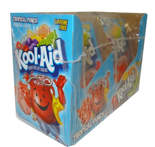 Kool Aid Pack – this unsweetened drink mix comes in convenient individual sachets in yummy tropical punch flavour. Just add water for a refreshing treat. Caffeine free. (48 sachets)