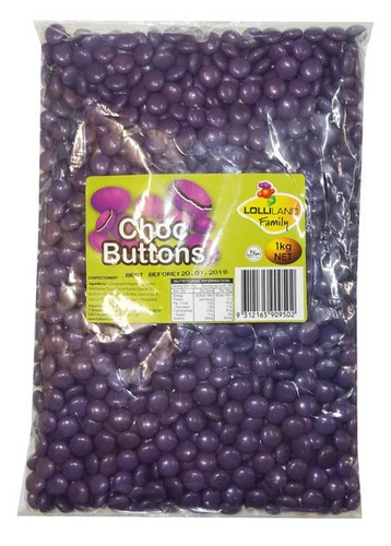 Ideal for both end consumers and businesses alike, these delectable treats are perfect for a wide range of occasions. Whether youre a baker looking to add a touch of whimsy to your creations, a cake shop owner seeking to delight customers with irresistible confections, or an event stylist planning a candy buffet that will dazzle guests, Lolliland Choc Buttons in Purple are sure to steal the show.