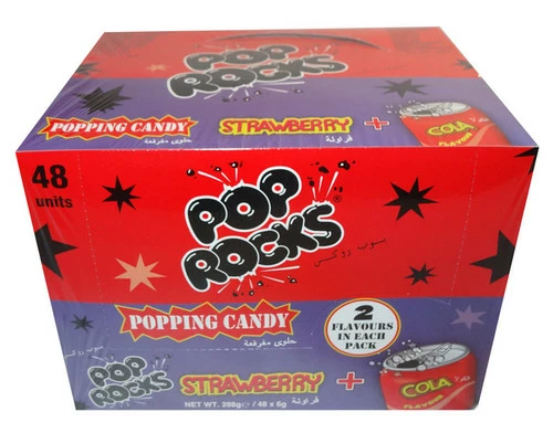 Genuine Pop Rocks Action Candy. These crackling and popping candies come with 24 cola sachets and 24 strawberry sachets. (48 sachets at 6g each)