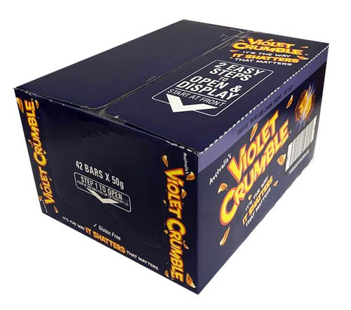 Nestle Violet Crumble – chocolate covered crunchy honeycomb bar. Its the way it shatter that matters! (42 x 50g bars)