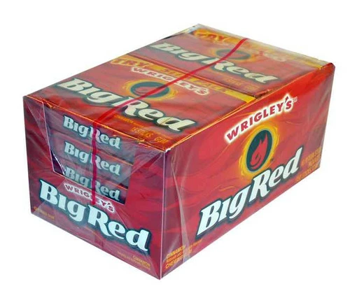 Wrigleys Big Red Cinnamon Chewing Gum. With a long lasting cinnamon taste, this gum keeps breath fresh for longer. (10 x 15 stick packs in a Display)